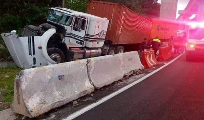 Tráiler aparentemente sin frenis, impacta a cuatro vehículos en la México-Toluca.