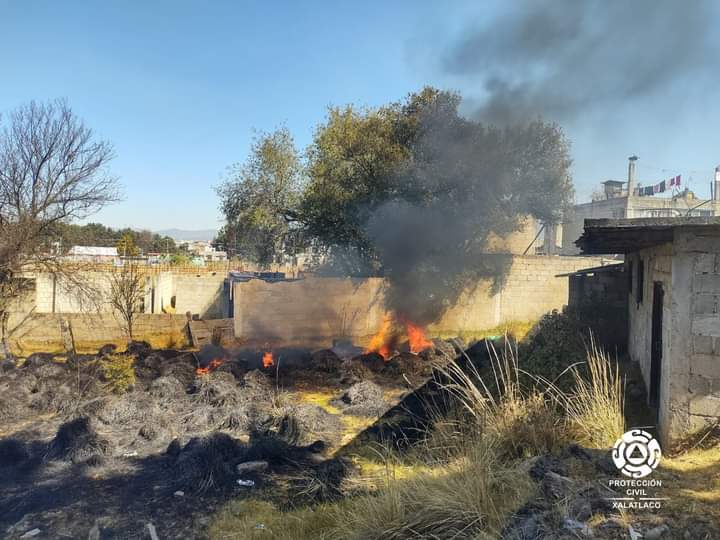 Elementos de Bomberos Xalatlaco acudieron a un incendio de pastizal el cual tuvo origen sobre la Calle Chiquispan el pasado martes. Al arribar al lugar se trataba de un siniestro de aproximadamente 700 Mts². Por lo cual procedimos a realizar la sofocación de la zona con maniobras contrafuego y con agua a presión, afortunadamente este suceso tuvo un saldo en blanco. Al termino hicimos contacto con la propietaria dando recomendaciones de cuidado y de prevención.