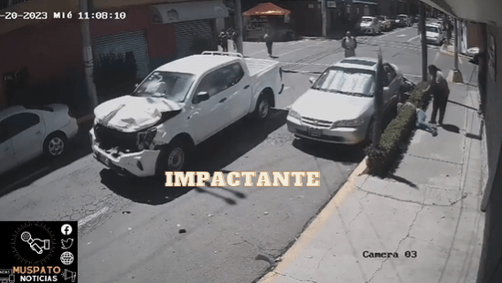Una cámara de seguridad captó el momento en que una camioneta embistió a una pareja de repartidores que viajaba a bordo de una motocicleta, en un cruce de la colonia San Cristóbal del municipio de Ecatepec, Estado de México. Ambos resultaron lesionados.