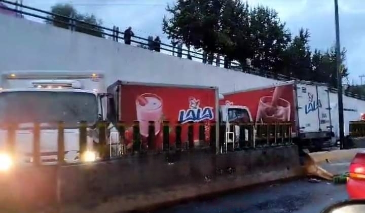 Durante la tarde lluviosa del jueves 10 de agosto, tres camionetas de carga de la empresa LALA colisionaron entre si, provocando una intensa carga vehicular sobre carriles de alta velocidad de Paseo Tollocan.