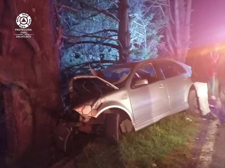 A través de una llamada de emergencia, elementos de Protección Civil Xalatlaco acudieron la madrugada de hoy a un percance vehicular el cuál tuvo origen sobre la Carretera Tenango – La Marquesa, a altura de paraje La loma, al arribar al lugar fue positivo dicho reporte ya que se trataba de un coche particular el cuál habría perdido el control y se impacto de forma frontal contra un árbol, de inmediato procedimos a realizar maniobras de extracción ya que un masculino se encontraba al interior del vehículo, posterior a ello se valoró a él y a otro masculino, para después ser trasladados al Hospital Mariano Matamoros.
