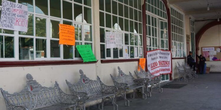 Los manifestantes soldaron los accesos a las oficinas y al auditorio municipal, rompieron algunos vidrios y colocaron cartulinas y lonas para exigir que el presidente Andrés Manuel López Obrador respete la propiedad de sus tierras.