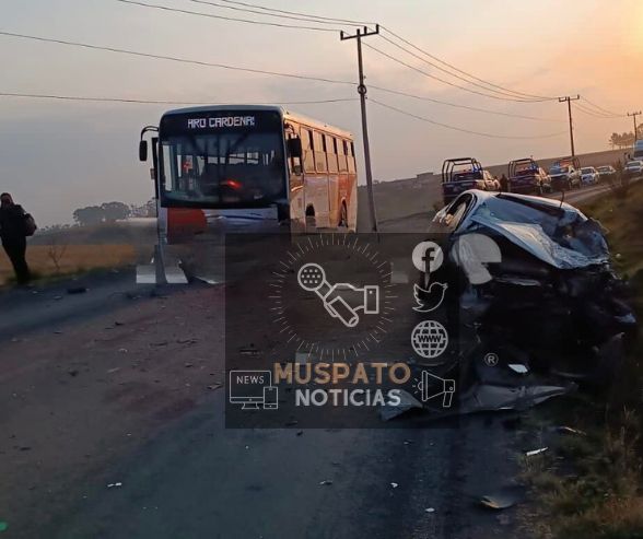 Una persona si. n vi. da y varios lesionados, fue el saldo de un fuerte choque frontal entre un vehículo VW Jetta color blanco y un autobús de la línea Insurgentes, en el municipio de Almoloya de Juárez, (El auto particular quedó destrozado de la parte frontal, foto en comentarios)