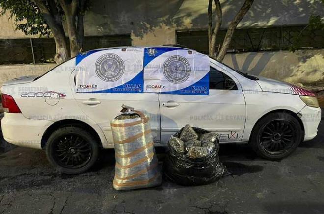 Al concluir la inspección, los uniformados hallaron al interior de la unidad diversos paquetes que contenían una hiera verde con características similares a la marihuana, sumando un aproximado de casi 38 kilogramos; además localizaron un arma de fuego calibre 25 milímetros, cartuchos útiles, dos celulares y dinero en efectivo.