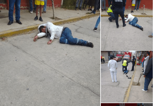 llegaron proteccion civil y la policia municipal para auxiliar al presunto ladron despues que ya habia sido golpeado para atenderlo y llevarlo detenido por el delito de robo
