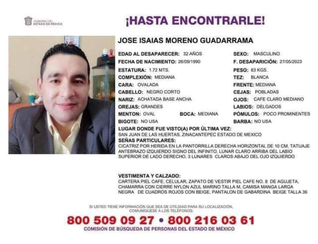 Padre de José Isaías busca a su hijo. Fue visto por última vez el 27 de mayo en San Juan de las Huertas. Ayudemos a que regrese sano y salvo.