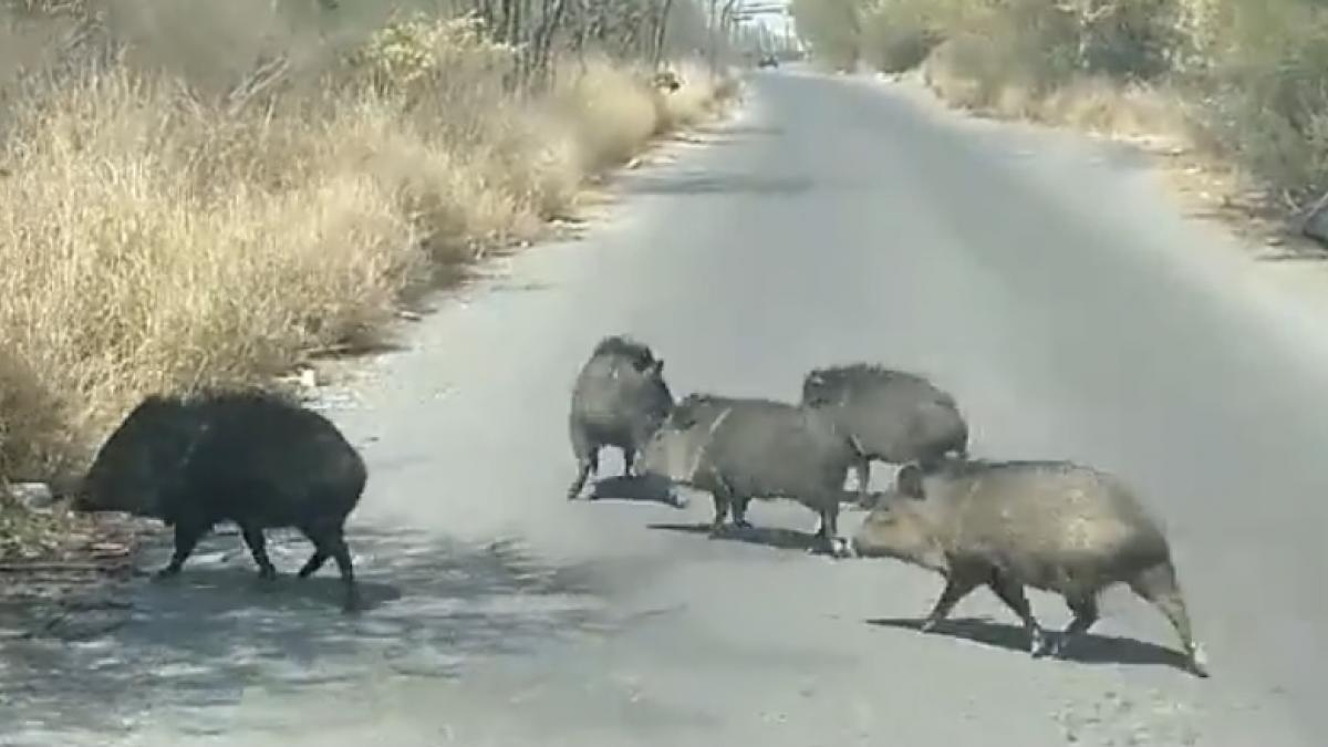Vecinos de la comunidad Valle de Chapultepec en Monterey se sorprendieron al ver a una familia de cuatro jabalíes caminando, por lo que llamaron a protección civil y bomberos.