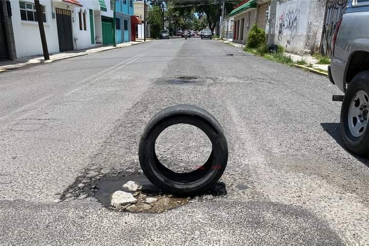 🕳️📸 Las fotos de los baches fueron tomadas a una cuadra de la manifestación, sobre Aldama, Prolongación Ramón Corona y la misma calle de Allende.