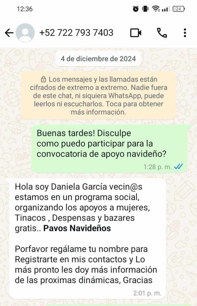 Se difundió la información solo por WhatsApp y por medio de un grupo iban mandando dinámicas y fotos de otros apoyos que ya habían entregado en otros lados la chica se hace llamar Daniela García y dice que es jefa vecinal vienen de apoyos federales.