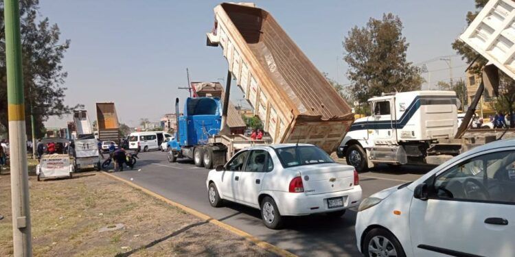 La protesta la realizaron transportistas a la altura del municipio de Nezahualcóyotl, quienes denunciaron cobros excesivos que mantienen a uno de sus camiones en un corralón particular.