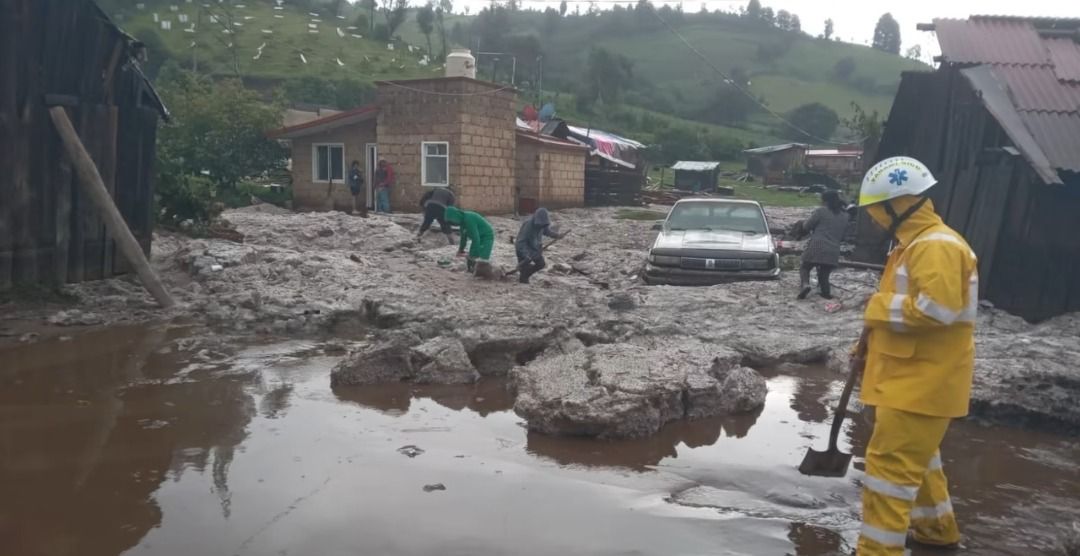 Cuerpos de emergencia municipales llegaron al lugar para apoyar a los afectados. Afortunadamente, no se reportaron personas lesionadas, aunque las calles permanecen bloqueadas por el granizo y se registraron daños materiales en las casas. Autoridades continúan evaluando la situación.