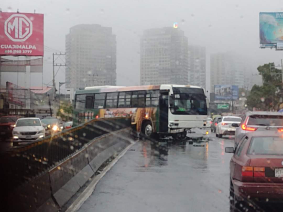 A la altura de Ancona (dirección cdmx) un autobus se lleva parte del muro de contención. Sigue ahí el autobus, empieza a aumentar el tráfico.