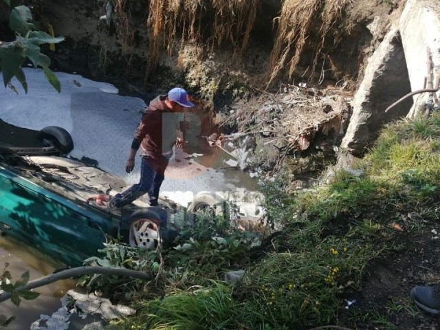 Un vehículo cayó a un canal de aguas negras en la curva de Villas Santín, en la Avenida Toluca, justo en la colonia Guadalupe Victoria atrás del parque industrial Toluca 2000.