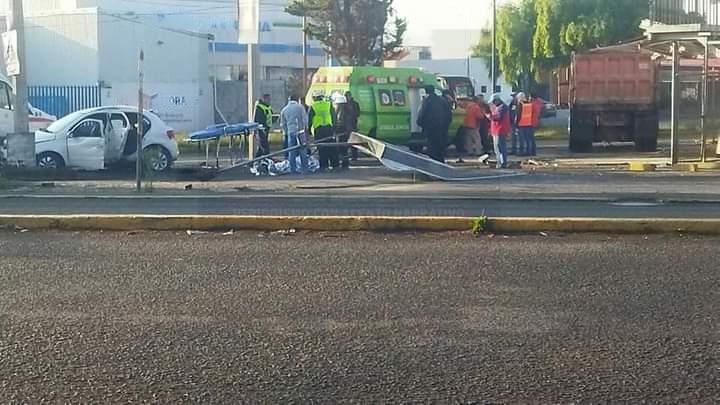 Vehículo se impacta y derriba anuncio en el cruce de Tecnológico y Avenida Lerma.